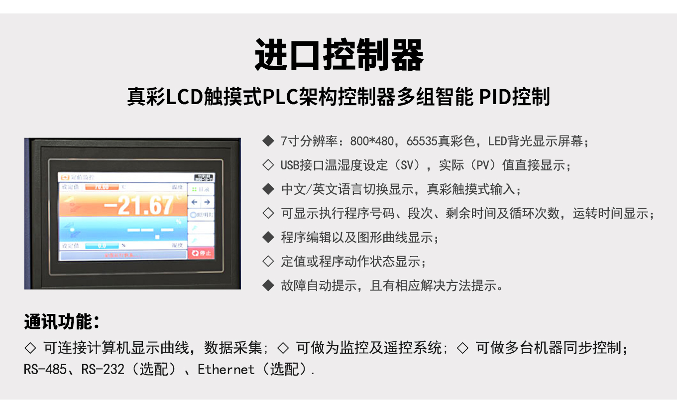 车入式环境试验舱,用于模拟高温环境对测试件温度应力测试,温湿度老化测试,性能测试,耐候测试,温度类存储测试等。自主研发高性能控制器:精准控温,功能全面,界面友好。节能降噪:基于流体力学仿真设计优化风道系统,风路循环更合理,灵活可靠的制冷系统设计,兼顾特殊温湿度点和常用实验点,设备运行处于最节能、低噪音状态。