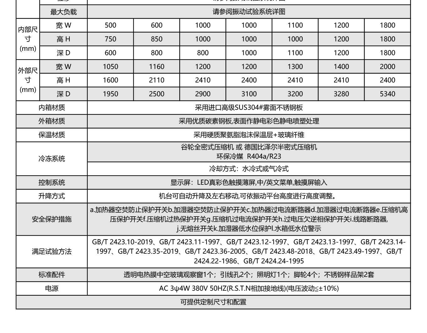 内箱尺寸:W1000mm×H1000mm×D1000mm